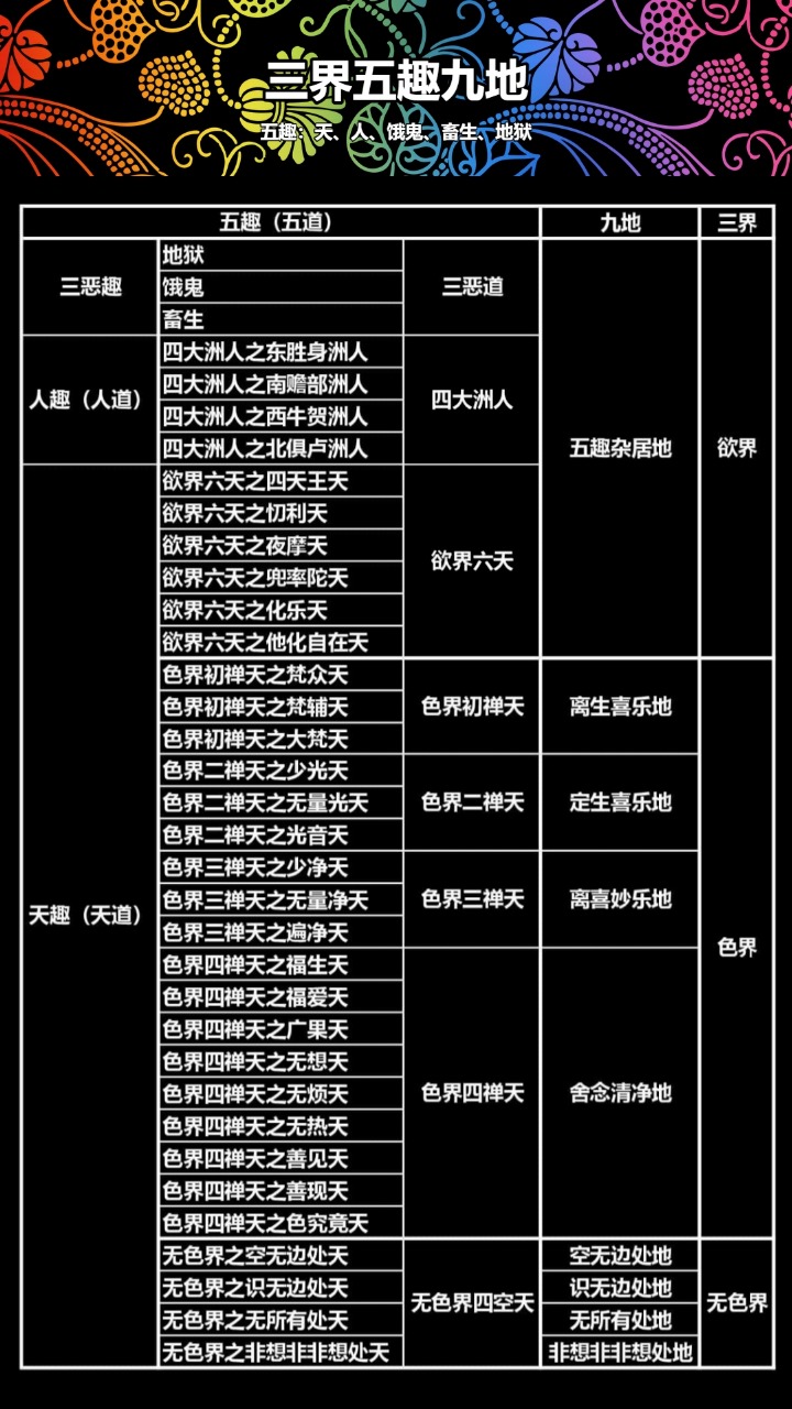 所谓五趣众生:天、人、饿鬼、畜生、地狱。此名五趣众生世间。(其中饿鬼、畜生、地狱亦称三塗,即三恶道。)